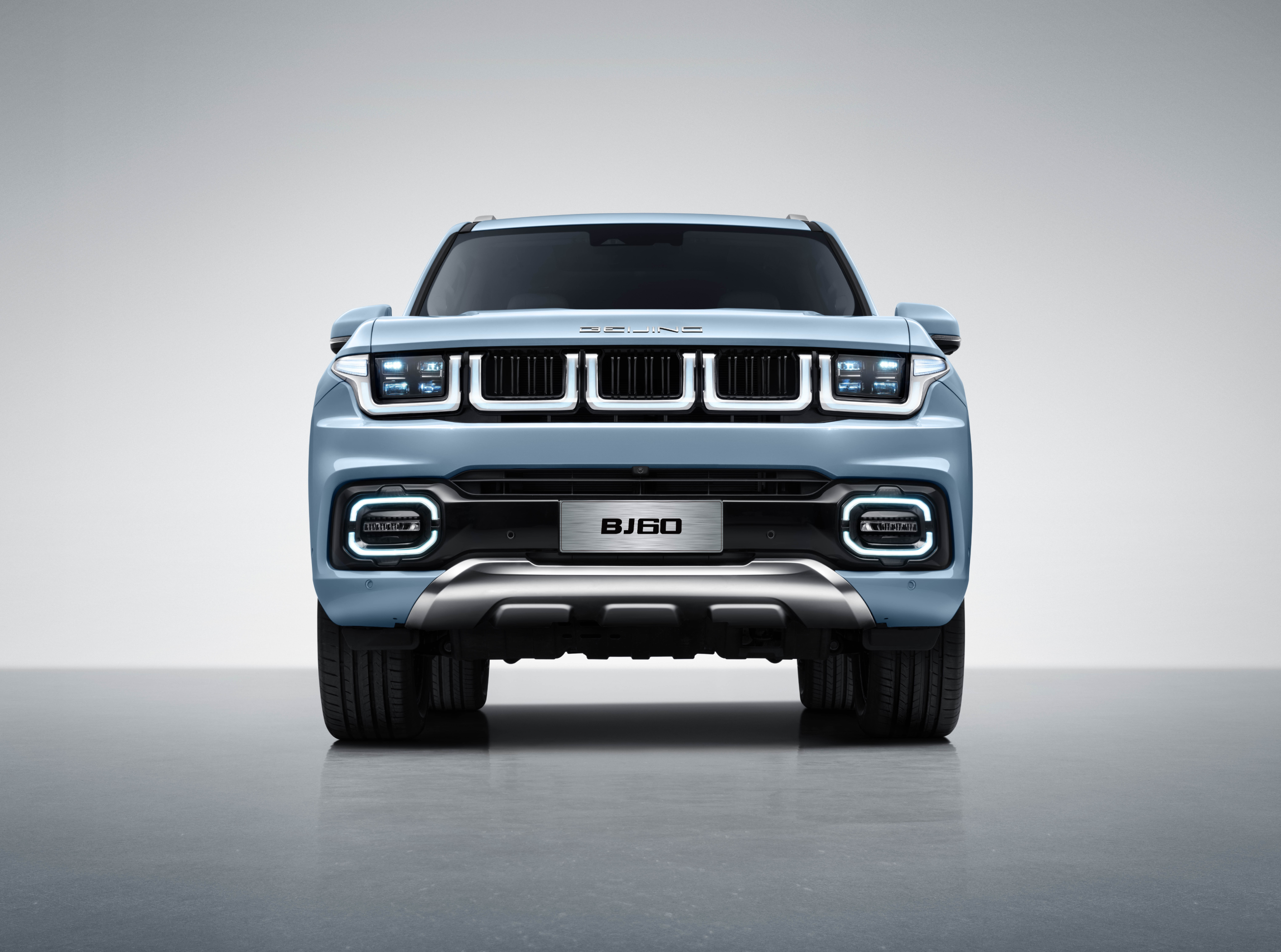 W topowym modelu BJ60 zadebiutował pięciosegmentowy, gustowny chromowany panel w przednim pasie nadwozia, w którym w dwóch skrajnych segmentach osadzono prostokątne reflektory LED. Po włączeniu świateł efektowne oświetlenie LED prześwieca przez warstwę chromu we wszystkich pięciu segmentach tworząc niepowtarzalny efekt podkreślający nowoczesny wizerunek marki BAIC.